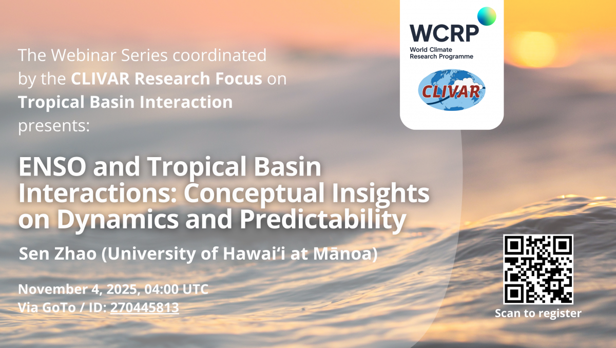 In this webinar, I will briefly review fundamental dynamics of ENSO and other tropical modes of variability through a hierarchy of conceptual frameworks. I will then present a newly developed eXtended nonlinear Recharge Oscillator (XRO) model which parsimoniously incorporates the core ENSO dynamics and ENSO’s seasonally modulated interactions with other tropical climate modes. The XRO framework enables quantification of TBI’s influence on the dynamics, variability, and predictability of ENSO and other climate modes in a unified framework. I will also demonstrate how different XRO experiment techniques—including decoupled experiments, pacemaker experiments, and pacemaker hindcast experiments that mimic GCM experiments—can provide distinct insights on TBI’s role on ENSO’s variability and predictability. Finally, I will also discuss how biases in climate models affect ENSO–TBI relationships and limit their predictive accuracy.
