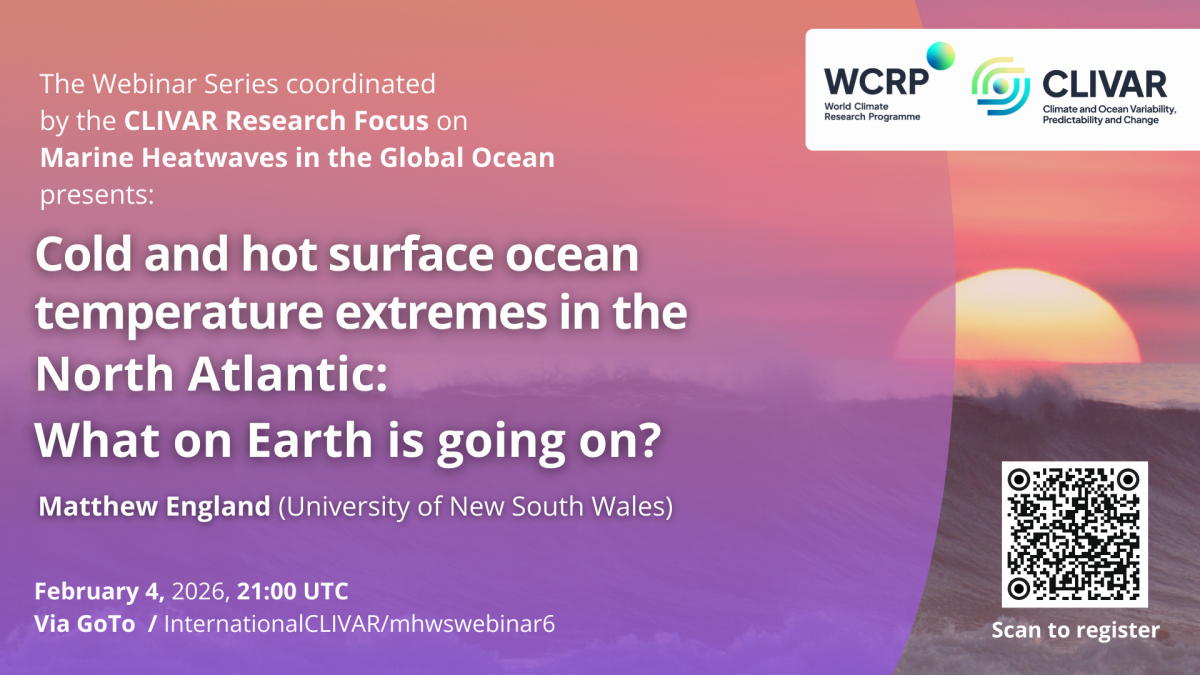 The CLIVAR Research Focus on Marine Heatwaves in the Global Ocean is pleased to announce its upcoming webinar: